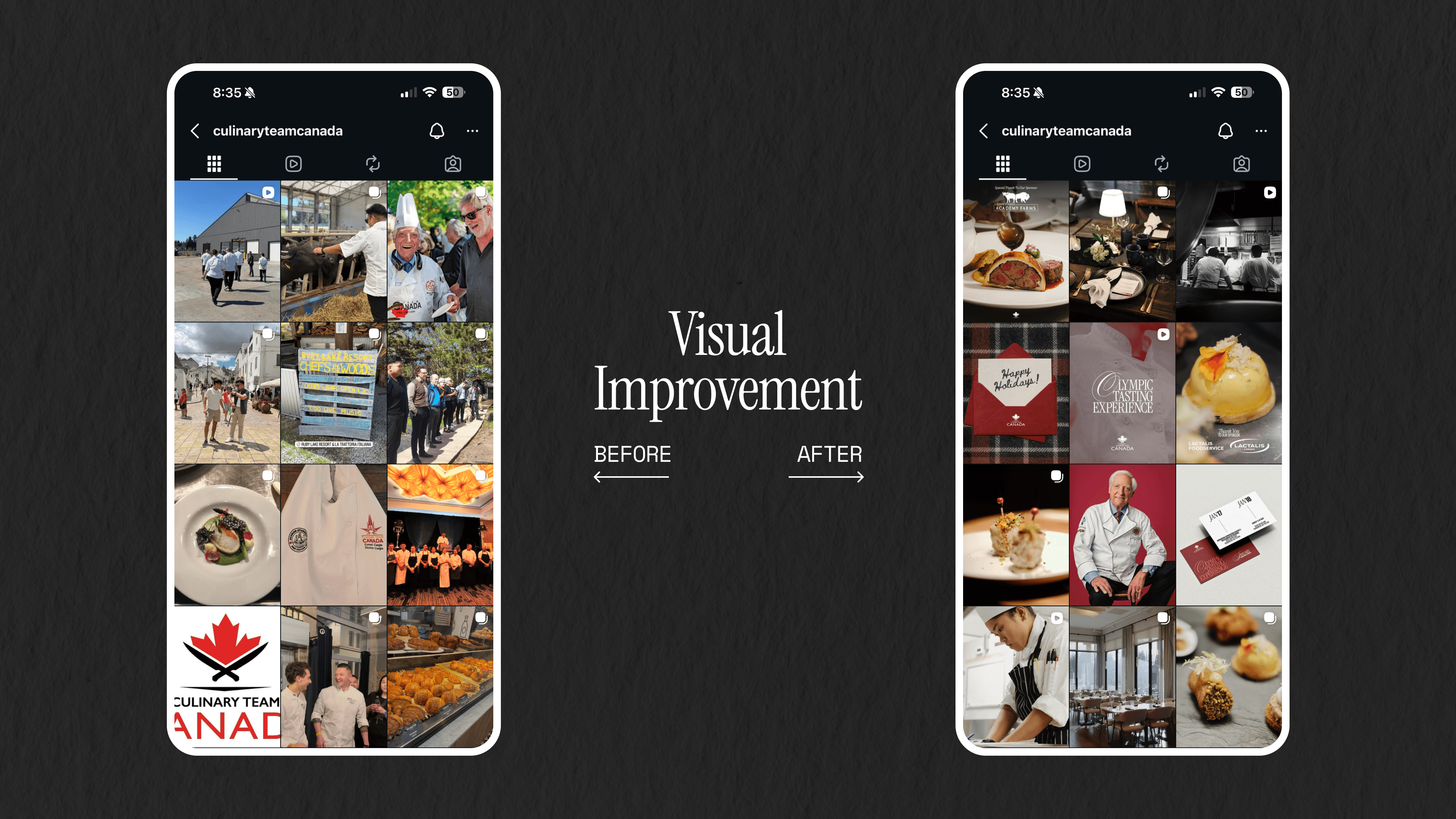 Leading content for Culinary Team Canada from concept to performance, I manage the full creative process from ideation and strategy to on-site execution, final delivery, and post-launch analysis.